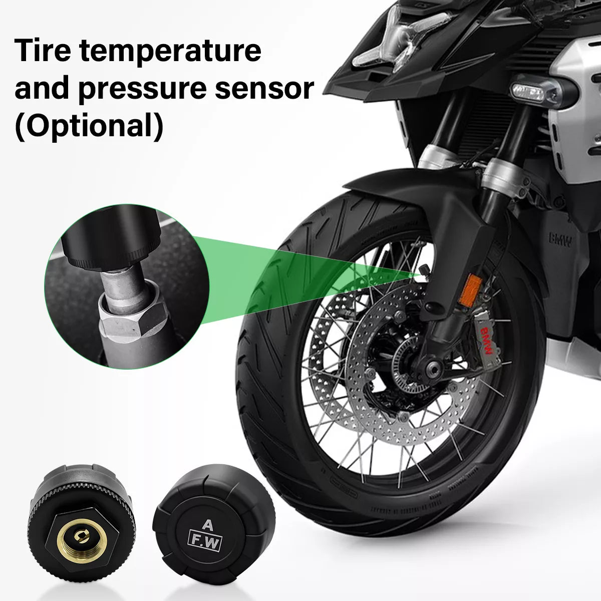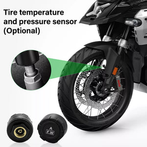 Veiligheid eerst. Koppel de Aoocci TPMS sensoren (optioneel) om je bandenspanning en temperatuur live op het scherm te zien, met snelle signalen bij afwijkingen. (Let op: Werkt met Aoocci sensoren, niet de OEM BMW sensoren).